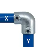 90° angle joint, often used where top rail meets end upright on level sites.