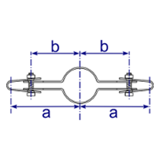 A double mesh panel clip. Typically used for retaining weld mesh panels into guardrail. To correctly retain the weld mesh panel in place using this clip, the mesh should be framed with a 8mm bar. For attaching mesh panels to both sides of tube.