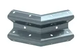 External corner for joining two Armco type crash barrier beams at a 90 degree angle.