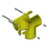 90° joint, often used to join intermediate uprights to top rails on level sites. This fitting can be used where through tube (horizontal in photo) has to be joined within the fitting. Where such a joint is not required, FRP 104 can often be used as an alternative.