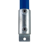 A palm-type fitting, often used to attach guardrail uprights to walls, staircases and ramps. In standard form, the tube cannot pass through the bottom of the fitting, although the fitting may be modified to accommodate this at extra cost.