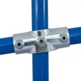 Adjustable for slopes from 0° to 11°, often used to join intermediate uprights to top rails and middle rails to end uprights. This Interclamp can be used where through tube (sloping in photo) has to be joined within the fitting. Normally used in conjunction with the 156 fitting. Type 153 may often be used as an alternative.