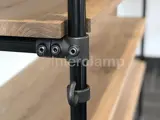 A fantastic use of Interclamp pipe clamp self-colour fittings to create this modern oak shelving unit. As well as standard fittings, 182's have been used to provide hooks for additional functionality.